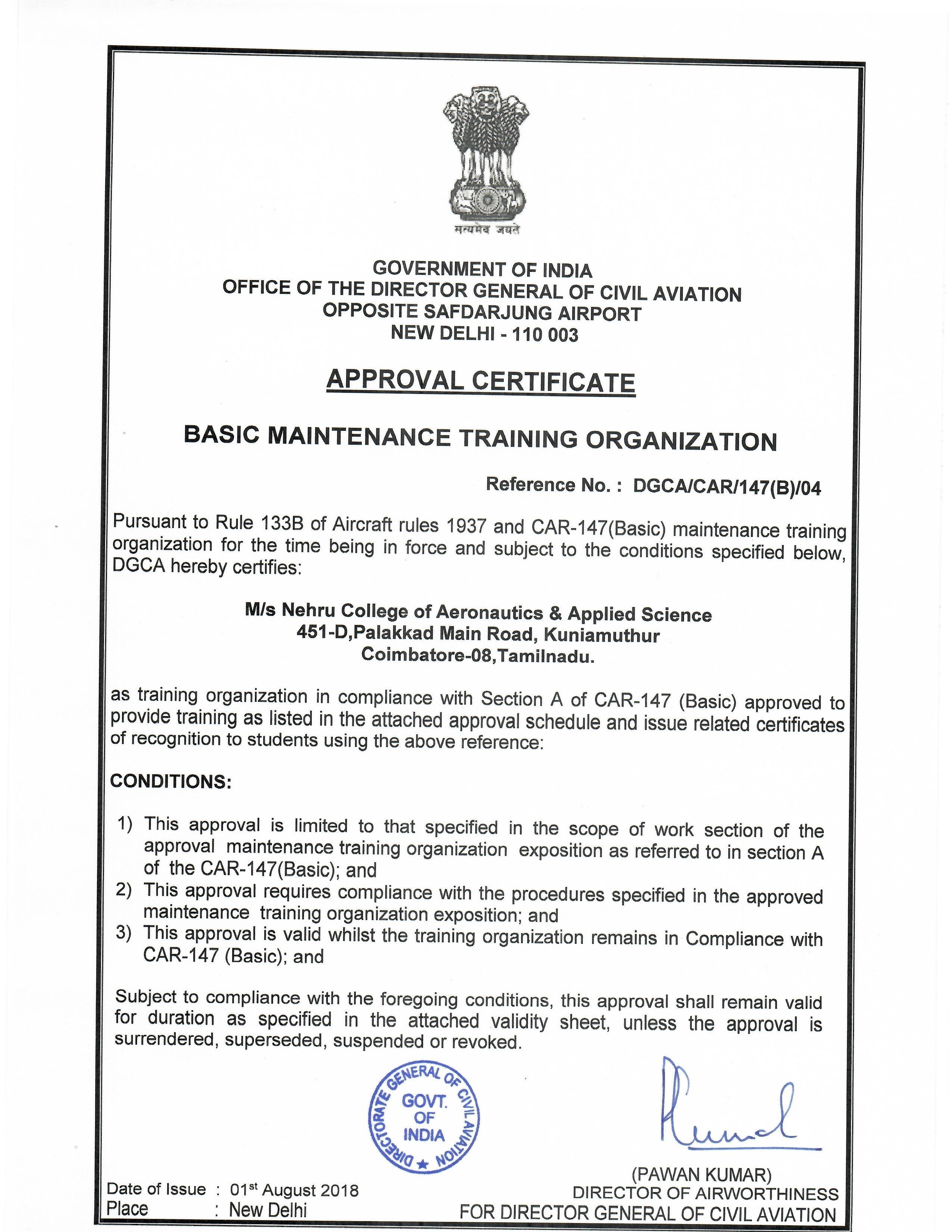 The student must be determined and motivated to take up any amount of challenges involved in the Aviation industry, grooming himself / herself to being a disciplined, well-mannered and smart human being to become a highly skilled and dedicated Aircraft Maintenance Engineer.